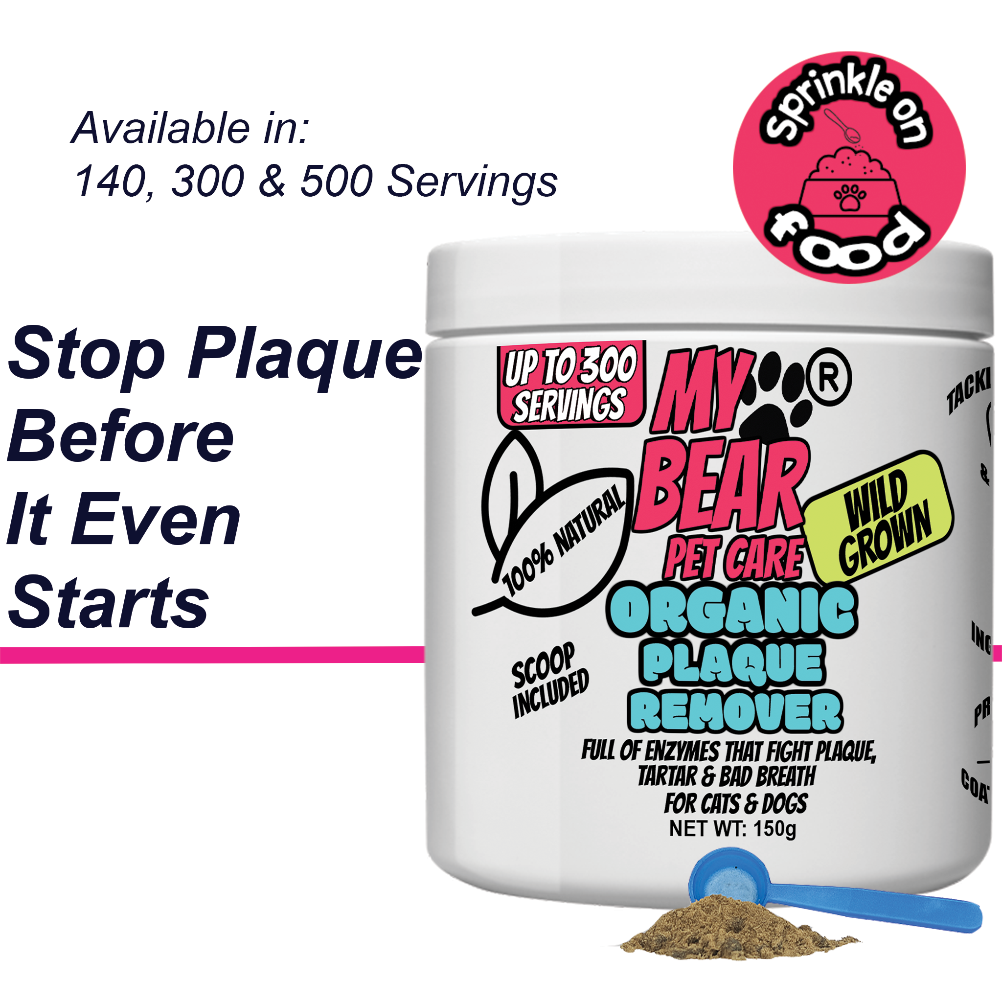 Kelp powder contains natural enzymes and minerals that help break down plaque and tartar buildup on your pet's teeth. The iodine and other nutrients in kelp work to reduce harmful bacteria in the mouth, promoting fresher breath and healthier gums naturally.