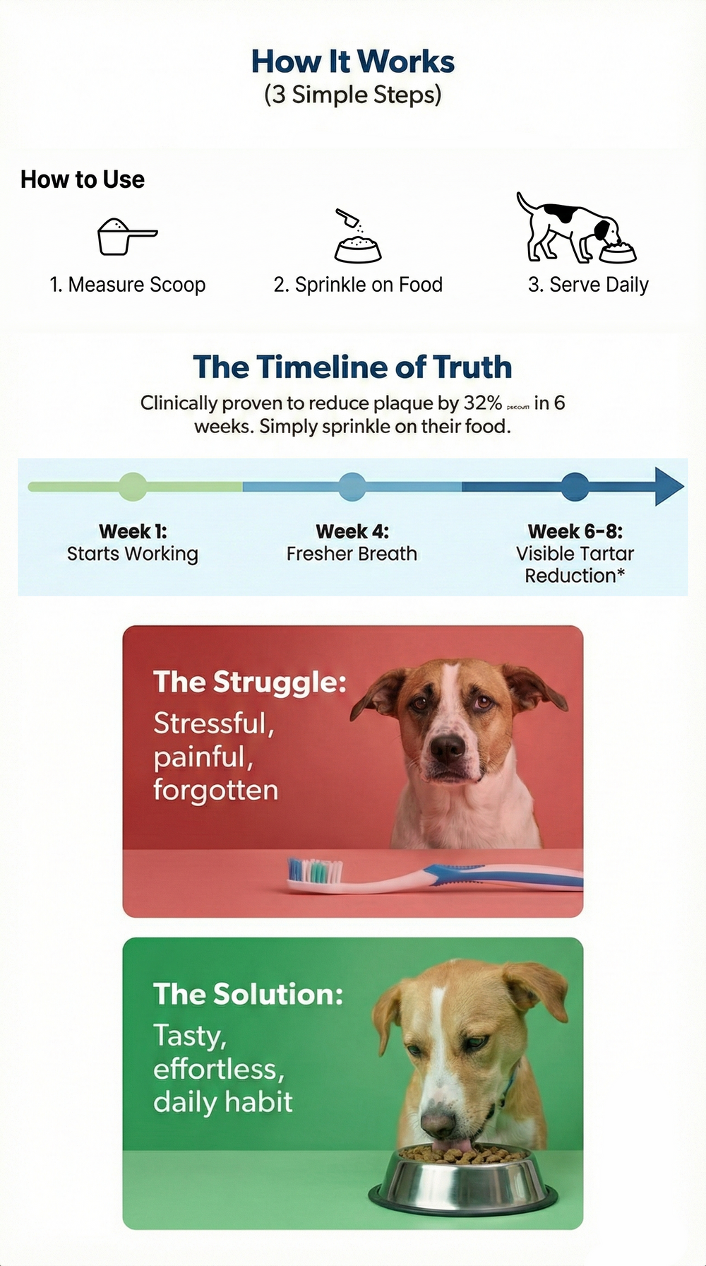 Most pet owners notice fresher breath within 2-3 weeks of regular use. Visible improvements in plaque reduction typically appear after 4-8 weeks of consistent daily supplementation.
